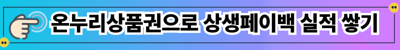 반드시 온누리 상품권을 카드로 연결한 후 그 카드를 사용해야 인정됩니다. 지류(종이)로 된 온누리 상품권과 QR코드 드 결제는 인정되지 않습니다. 온누리 상품권을 카드로 사용했을 때만 상생페이백 실적으로 인정됩니다.